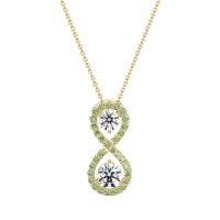 This Diamond and Peridot Necklace is casted in 14k Yellow Gold. This Women’s Fashion necklace features exceptionally fine gemstones, on par with those found in the world's most exclusive boutiques and among the top 10% available globally. Elegant Pendant with Two Central, Round-cut Stones And An infinity Halo Of Smaller Stones Around. Crafted in A Sleek Metal Setting, It Offers A Sophisticated Touch. This necklace comes with a complimentary 18-inch chain. Enjoy the confidence of our 30-day, stress-free return policy—with return shipping fully covered. Each piece is also accompanied by a Lifetime Warranty, ensuring lasting beauty and peace of mind.