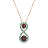 This Garnet and Emerald Necklace is casted in 18K Rose Gold. This Women’s Fashion necklace features exceptionally fine gemstones, on par with those found in the world's most exclusive boutiques and among the top 10% available globally. Elegant Pendant with Two Central, Round-cut Stones And An infinity Halo Of Smaller Stones Around. Crafted in A Sleek Metal Setting, It Offers A Sophisticated Touch. This necklace comes with a complimentary 18-inch chain. Enjoy the confidence of our 30-day, stress-free return policy—with return shipping fully covered. Each piece is also accompanied by a Lifetime Warranty, ensuring lasting beauty and peace of mind.