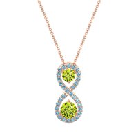 This Peridot and Aquamarine Necklace is casted in 18K Rose Gold. This Women’s Fashion necklace features exceptionally fine gemstones, on par with those found in the world's most exclusive boutiques and among the top 10% available globally. Elegant Pendant with Two Central, Round-cut Stones And An infinity Halo Of Smaller Stones Around. Crafted in A Sleek Metal Setting, It Offers A Sophisticated Touch. This necklace comes with a complimentary 18-inch chain. Enjoy the confidence of our 30-day, stress-free return policy—with return shipping fully covered. Each piece is also accompanied by a Lifetime Warranty, ensuring lasting beauty and peace of mind.