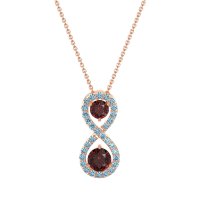 This Ruby and Aquamarine Necklace is casted in 18K Rose Gold. This Women’s Fashion necklace features exceptionally fine gemstones, on par with those found in the world's most exclusive boutiques and among the top 10% available globally. Elegant Pendant with Two Central, Round-cut Stones And An infinity Halo Of Smaller Stones Around. Crafted in A Sleek Metal Setting, It Offers A Sophisticated Touch. This necklace comes with a complimentary 18-inch chain. Enjoy the confidence of our 30-day, stress-free return policy—with return shipping fully covered. Each piece is also accompanied by a Lifetime Warranty, ensuring lasting beauty and peace of mind.