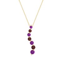 This Amethyst and Ruby Necklace is casted in 18k Yellow Gold. This Women’s Fashion necklace features exceptionally fine gemstones, on par with those found in the world's most exclusive boutiques and among the top 10% available globally. This Pendant Showcases A Graceful, Curved Design Adorned with A Series Of Round Stones That Gradually increase in Size Towards The Center. The Stones Are Set in A Sleek Metal, Enhancing Their Brilliance And Creating A Captivating Effect. This necklace comes with a complimentary 18-inch chain. Enjoy the confidence of our 30-day, stress-free return policy—with return shipping fully covered. Each piece is also accompanied by a Lifetime Warranty, ensuring lasting beauty and peace of mind.