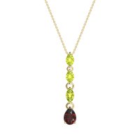 This Peridot and Ruby Necklace is casted in 14k Yellow Gold. This Women’s Classic necklace features exceptionally fine gemstones, on par with those found in the world's most exclusive boutiques and among the top 10% available globally. This Pendant Features A Series Of Marquise-shaped Stones, Cascading Down To A Larger, Pear-shaped Stone At The Bottom. This necklace comes with a complimentary 18-inch chain. Enjoy the confidence of our 30-day, stress-free return policy—with return shipping fully covered. Each piece is also accompanied by a Lifetime Warranty, ensuring lasting beauty and peace of mind.