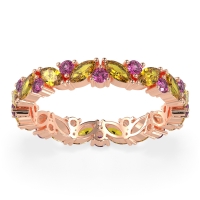This Citrine wedding ring is casted in 14K Rose Gold and set with fine quality Citrine and Pink Tourmaline. All of the gemstones we use are of the top 10% available, those found in fine quality boutiques across the world. This Citrine wedding band can also be added to your collection of minimalist Citrine rings. This Eternity Band Consists Of Marquise And Round Gemstones Set Randomly Throughout The Ring. Free shipping, returns, resizing, and a lifetime warranty ensure you love your purchase.