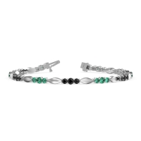 These 14k White Gold bracelets feature fine quality Emerald gemstones. This Fashion Bracelet Consists Of Marquise Shaped Links, with Alternating Links Of Graduated Three Stone Settings in Between. Free shipping, returns, and a lifetime warranty make luxury worry-free