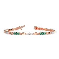 These 18K Rose Gold bracelets feature fine quality Emerald gemstones. This Fashion Bracelet Consists Of Marquise Shaped Links, with Alternating Links Of Graduated Three Stone Settings in Between. Free shipping, returns, and a lifetime warranty make luxury worry-free