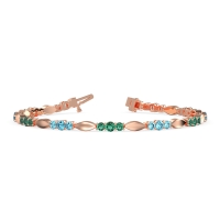 These 14K Rose Gold bracelets feature fine quality Swiss Blue Topaz gemstones. This Fashion Bracelet Consists Of Marquise Shaped Links, with Alternating Links Of Graduated Three Stone Settings in Between. Free shipping, returns, and a lifetime warranty make luxury worry-free