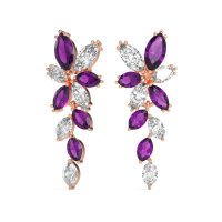 These Amethyst earrings and made in 18K Rose Gold with top quality Amethyst and Lab Diamond gemstones. These Fashion Earrings Feature An Intricate And Organic Design, Composed Entirely Of Marquise-shaped Stones. The Gems Are Skillfully Arranged In Various Orientations To Form A Captivating Floral Vine Pattern That Gracefully Cascades. This Unique Design Creates A Sense Of Natural Movement And Brilliant Sparkle, Perfect For Adding A Distinctive Touch Of Nature-inspired Elegance To Any Look. Free shipping, returns, and a lifetime warranty make luxury worry-free