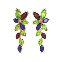These 14K Rose Gold Peridot earrings feature fine quality with Natural Peridot, Ruby and Blue Sapphire gemstones. These Fashion Earrings Feature An Intricate And Organic Design, Composed Entirely Of Marquise-shaped Stones. The Gems Are Skillfully Arranged In Various Orientations To Form A Captivating Floral Vine Pattern That Gracefully Cascades. This Unique Design Creates A Sense Of Natural Movement And Brilliant Sparkle, Perfect For Adding A Distinctive Touch Of Nature-inspired Elegance To Any Look. Free shipping, returns, and a lifetime warranty make luxury worry-free.