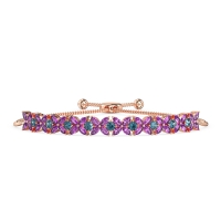 These 18K Rose Gold bracelets feature fine quality Amethyst gemstones. This Flower Bracelet Features Marquise-shaped Stones Delicately Arranged To Form A Blooming Flower. This Adjustable Bolo Bracelet Can Fit Any Size Wrist. Free shipping, returns, and a lifetime warranty make luxury worry-free