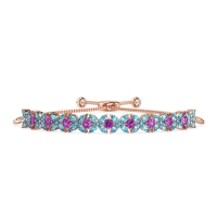 These 14K Rose Gold bracelets feature fine quality Swiss Blue Topaz gemstones. This Flower Bracelet Features Marquise-shaped Stones Delicately Arranged To Form A Blooming Flower. This Adjustable Bolo Bracelet Can Fit Any Size Wrist. Free shipping, returns, and a lifetime warranty make luxury worry-free