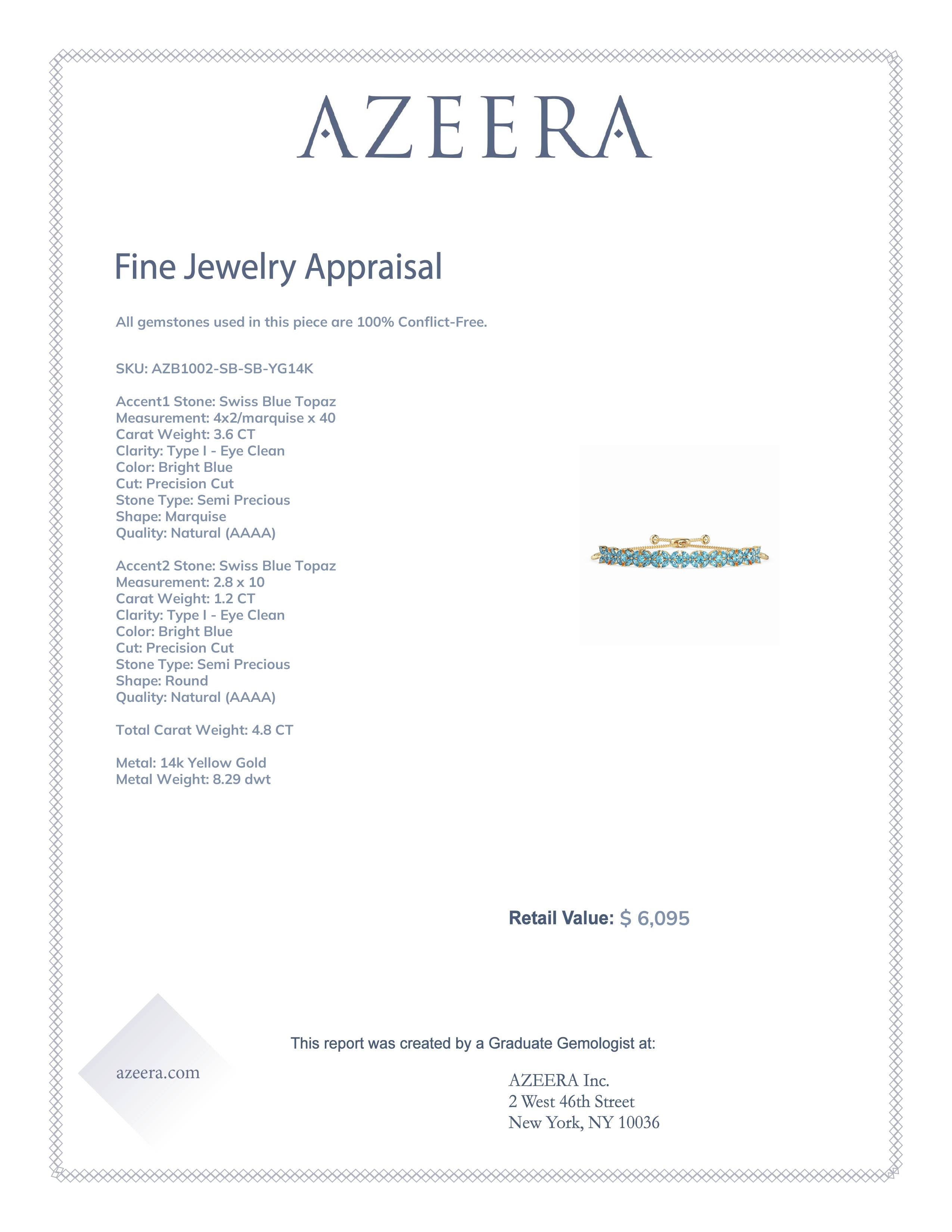 These 14k Yellow Gold bracelets feature fine quality Swiss Blue Topaz gemstones. This Flower Bracelet Features Marquise-shaped Stones Delicately Arranged To Form A Blooming Flower. This Adjustable Bolo Bracelet Can Fit Any Size Wrist. Free shipping, returns, and a lifetime warranty make luxury worry-free