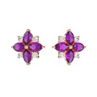 These Amethyst earrings and made in 14K Rose Gold with top quality Natural Amethyst and Diamond gemstones. These Marquise Flower Cluster Earrings Showcase A Delicate Floral Design Crafted From Shimmering Marquise-cut Stones. Arranged In A Graceful Cluster To Resemble A Blooming Flower, These Earrings Offer A Touch Of Elegance And Femininity—perfect For Special Occasions Or Adding A Refined Sparkle To Everyday Wear. Free shipping, returns, and a lifetime warranty make luxury worry-free