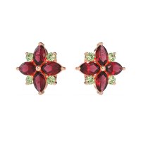 These Ruby earrings and made in 14K Rose Gold with top quality Natural Ruby and Peridot gemstones. These Marquise Flower Cluster Earrings Showcase A Delicate Floral Design Crafted From Shimmering Marquise-cut Stones. Arranged In A Graceful Cluster To Resemble A Blooming Flower, These Earrings Offer A Touch Of Elegance And Femininity—perfect For Special Occasions Or Adding A Refined Sparkle To Everyday Wear. Free shipping, returns, and a lifetime warranty make luxury worry-free