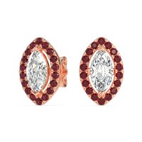 These Diamond earrings and made in 14K Rose Gold with top quality Natural Diamond and Ruby gemstones. Adorn Yourself With These Captivating Marquise Halo Stud Earrings. A Brilliant Marquise-cut Center Stone Is Elegantly Encircled By A Sparkling Halo, Enhancing Its Graceful Silhouette And Creating A Truly Radiant And Timeless Design. Free shipping, returns, and a lifetime warranty make luxury worry-free