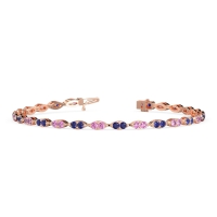 These 14K Rose Gold bracelets feature fine quality Blue Sapphire gemstones. This Stunning Bracelet Features Marquise-shaped Links, Each Formed By A Pair Of Sparkling Round Gemstones Nestled Together in A Dazzling Embrace. Free shipping, returns, and a lifetime warranty make luxury worry-free