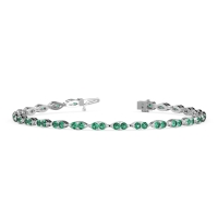 These 14k White Gold bracelets feature fine quality Emerald gemstones. This Stunning Bracelet Features Marquise-shaped Links, Each Formed By A Pair Of Sparkling Round Gemstones Nestled Together in A Dazzling Embrace. Free shipping, returns, and a lifetime warranty make luxury worry-free