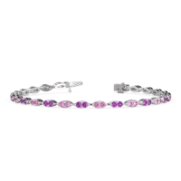 These 18k White Gold bracelets feature fine quality Pink Tourmaline gemstones. This Stunning Bracelet Features Marquise-shaped Links, Each Formed By A Pair Of Sparkling Round Gemstones Nestled Together in A Dazzling Embrace. Free shipping, returns, and a lifetime warranty make luxury worry-free