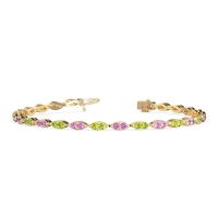 These 14k Yellow Gold bracelets feature fine quality Pink Tourmaline gemstones. This Stunning Bracelet Features Marquise-shaped Links, Each Formed By A Pair Of Sparkling Round Gemstones Nestled Together in A Dazzling Embrace. Free shipping, returns, and a lifetime warranty make luxury worry-free