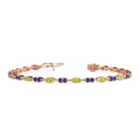 These 14K Rose Gold bracelets feature fine quality Peridot gemstones. This Stunning Bracelet Features Marquise-shaped Links, Each Formed By A Pair Of Sparkling Round Gemstones Nestled Together in A Dazzling Embrace. Free shipping, returns, and a lifetime warranty make luxury worry-free