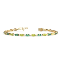These 14k Yellow Gold bracelets feature fine quality Peridot gemstones. This Stunning Bracelet Features Marquise-shaped Links, Each Formed By A Pair Of Sparkling Round Gemstones Nestled Together in A Dazzling Embrace. Free shipping, returns, and a lifetime warranty make luxury worry-free