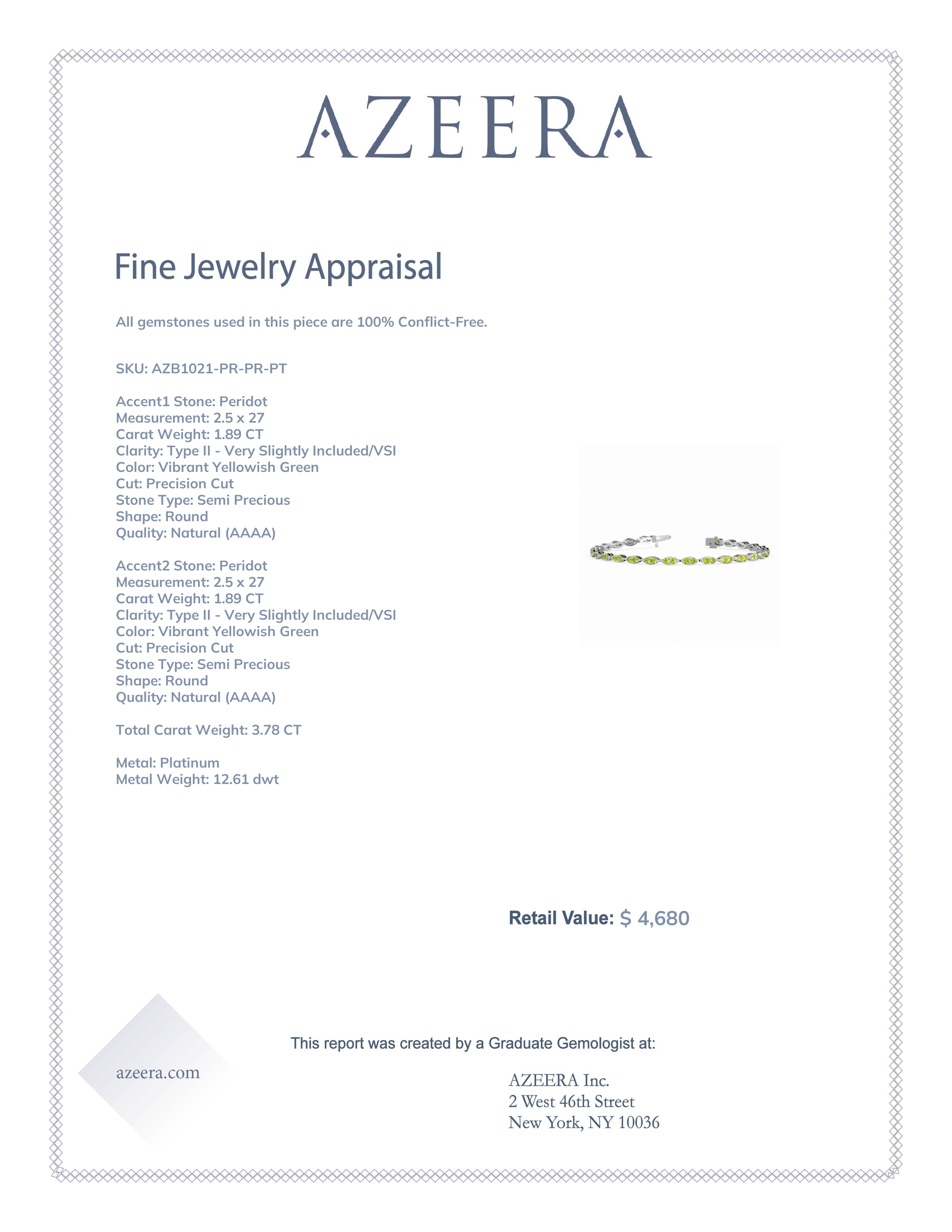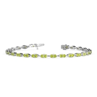 These Platinum bracelets feature fine quality Peridot gemstones. This Stunning Bracelet Features Marquise-shaped Links, Each Formed By A Pair Of Sparkling Round Gemstones Nestled Together in A Dazzling Embrace. Free shipping, returns, and a lifetime warranty make luxury worry-free