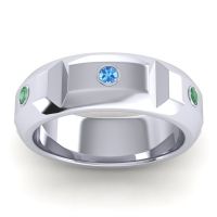 This mens Swiss Blue Topaz ring features AAAA gemstones, along with fine quality Emerald. This mens 14k White Gold ring will stand the test of time, mirroring the bond it symbolizes. This Unique Band Has Bezel Set Round Brilliant Gems Of Your Choice On 6 Raised Faces Giving The Ring A Hexagon Form Similar To A Torx Screw. Unique mens wedding bands say what words can't - about his style, his passions, his love. Choose from a variety of gems and metals to make custom rings for men! Free shipping, returns, resizing, and a lifetime warranty make choosing this product easy.