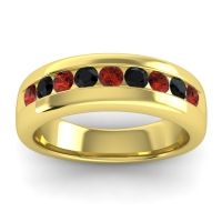 This mens Garnet ring features AAAA gemstones, along with fine quality Black Onyx. This mens 18k Yellow Gold ring will stand the test of time, mirroring the bond it symbolizes. This Stunning Band Holds 9 Channel Set Round Brilliant Gems Of Your Choice Around The Center Of The Ring. Unique mens wedding bands say what words can't - about his style, his passions, his love. Choose from a variety of gems and metals to make custom rings for men! Free shipping, returns, resizing, and a lifetime warranty make choosing this product easy.