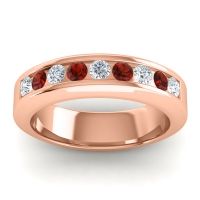 This mens Diamond ring features AAAA gemstones, along with fine quality Garnet. This mens 14K Rose Gold ring will stand the test of time, mirroring the bond it symbolizes. This Stunning Band Holds 9 Channel Set Round Brilliant Gems Of Your Choice Around The Center Of The Ring with Tapered Edges Giving The Ring A More Distinguished Appearance. Unique mens wedding bands say what words can't - about his style, his passions, his love. Choose from a variety of gems and metals to make custom rings for men! Free shipping, returns, resizing, and a lifetime warranty make choosing this product easy.