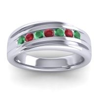 This mens Emerald ring features AAAA gemstones, along with fine quality Ruby. This mens Palladium ring will stand the test of time, mirroring the bond it symbolizes. This Stunning Band Holds 7 Channel Set Round Brilliant Gems Of Your Choice At An Angle Around The Center Of The Ring with Recessed Rows On The Sides Providing A Pleasant Contrast. Unique mens wedding bands say what words can't - about his style, his passions, his love. Choose from a variety of gems and metals to make custom rings for men! Free shipping, returns, resizing, and a lifetime warranty make choosing this product easy.