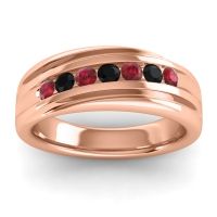 This mens Ruby ring features AAAA gemstones, along with fine quality Black Onyx. This mens 18K Rose Gold ring will stand the test of time, mirroring the bond it symbolizes. This Stunning Band Holds 7 Channel Set Round Brilliant Gems Of Your Choice At An Angle Around The Center Of The Ring with Recessed Rows On The Sides Providing A Pleasant Contrast. Unique mens wedding bands say what words can't - about his style, his passions, his love. Choose from a variety of gems and metals to make custom rings for men! Free shipping, returns, resizing, and a lifetime warranty make choosing this product easy.
