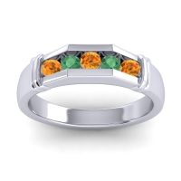 This mens Citrine ring features AAAA gemstones, along with fine quality Emerald. This mens 14k White Gold ring will stand the test of time, mirroring the bond it symbolizes. This Unique Band Holds 5 Channel Set Round Brilliant Gems Of Your Choice in Bridge Like Setting To Give It A Distinguished Masculine Look. Unique mens wedding bands say what words can't - about his style, his passions, his love. Choose from a variety of gems and metals to make custom rings for men! Free shipping, returns, resizing, and a lifetime warranty make choosing this product easy.