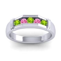 This mens Peridot ring features AAAA gemstones, along with fine quality Pink Tourmaline. This mens 18k White Gold ring will stand the test of time, mirroring the bond it symbolizes. This Unique Band Holds 5 Channel Set Round Brilliant Gems Of Your Choice in Bridge Like Setting To Give It A Distinguished Masculine Look. Unique mens wedding bands say what words can't - about his style, his passions, his love. Choose from a variety of gems and metals to make custom rings for men! Free shipping, returns, resizing, and a lifetime warranty make choosing this product easy.