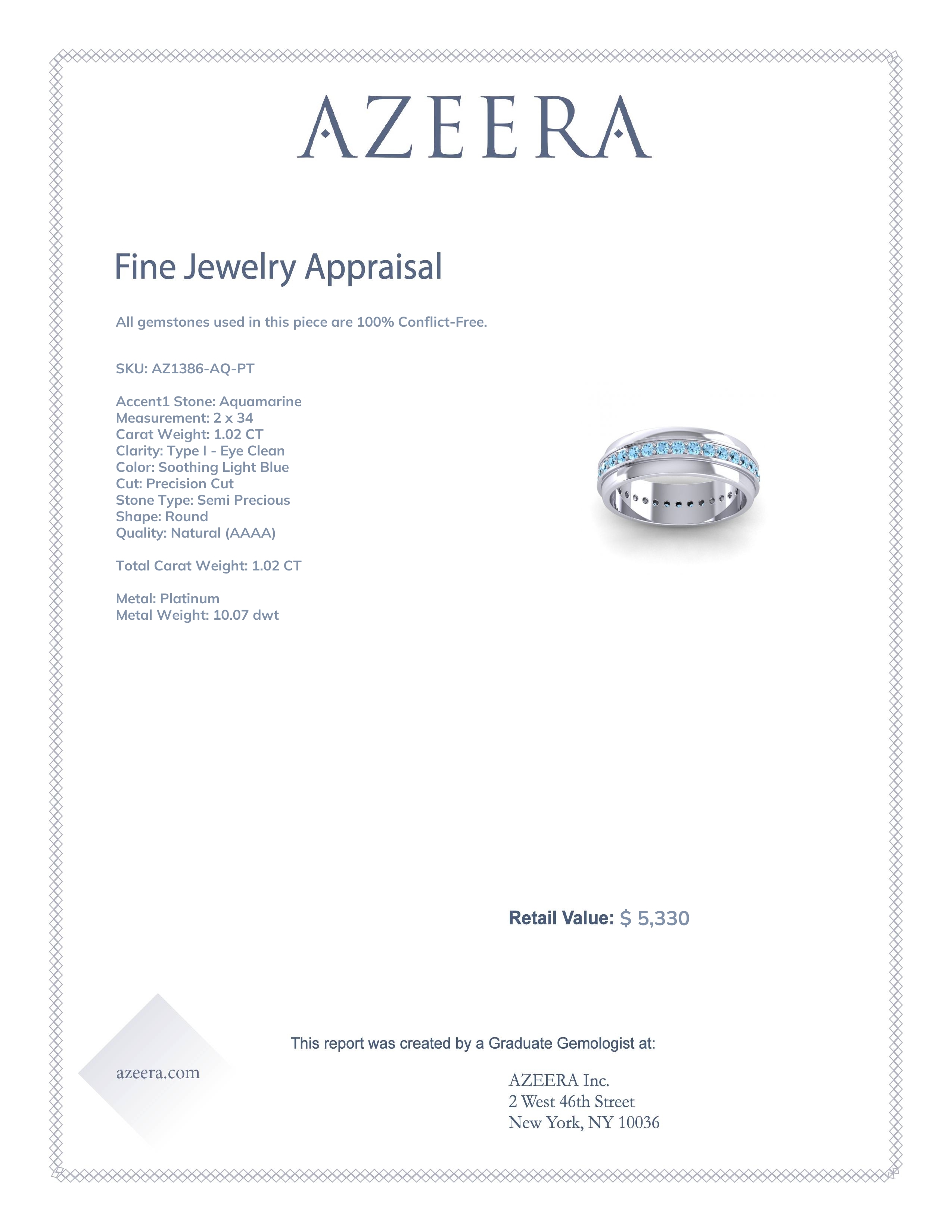 This Platinum Aquamarine mens wedding ring features top quality Aquamarine, amongst those found in fine jewelry boutiques across the world. This mens ring can be worn as a mens Aquamarine wedding band, or it can be worn as a general mens Gemstone ring. This Classical Band Has Round Brilliant Gems Of Your Choice in A Shared Prong Setting Around The Center Of The Band in Between Two Walls And Rounded Edges. Enjoy total worry-free shopping with our free shipping, returns, resizing, and lifetime warranty.