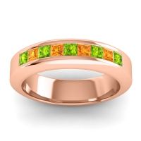 This mens Peridot ring features AAAA gemstones, along with fine quality Citrine. This mens 14K Rose Gold ring will stand the test of time, mirroring the bond it symbolizes. This Unique Ban Holds 9 Princess Cut Gems in A Channel Setting Securely Around The Center with Tapered Edges To Emphasize The Body Of The Ring. Unique mens wedding bands say what words can't - about his style, his passions, his love. Choose from a variety of gems and metals to make custom rings for men! Free shipping, returns, resizing, and a lifetime warranty make choosing this product easy.