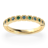 This Emerald wedding ring is casted in 14k Yellow Gold and set with fine quality Emerald and London Blue Topaz. All of the gemstones we use are of the top 10% available, those found in fine quality boutiques across the world. This Emerald wedding band can also be added to your collection of minimalist Emerald rings. This Multi-box Shaped Half-eternity Band Is Exquisitely Detailed with Milgrain And Gemstones. Free shipping, returns, resizing, and a lifetime warranty ensure you love your purchase.