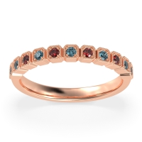 This Ruby wedding ring is casted in 18K Rose Gold and set with fine quality Ruby and London Blue Topaz. All of the gemstones we use are of the top 10% available, those found in fine quality boutiques across the world. This Ruby wedding band can also be added to your collection of minimalist Ruby rings. This Multi-box Shaped Half-eternity Band Is Exquisitely Detailed with Milgrain And Gemstones. Free shipping, returns, resizing, and a lifetime warranty ensure you love your purchase.