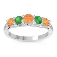 This Citrine wedding ring is casted in 14k White Gold and set with fine quality Citrine and Emerald. All of the gemstones we use are of the top 10% available, those found in fine quality boutiques across the world. This Citrine wedding band can also be added to your collection of minimalist Citrine rings. This Band Features Five Small Round Brilliant Gems Tension Set On The Shank. Free shipping, returns, resizing, and a lifetime warranty ensure you love your purchase.