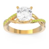 This 14k Yellow Gold Lab Diamond ring features a AAAA Cushion Lab Diamond, along with fine quality Peridot. This Ring Features A Large Cushion Cut Gem in A Raised Trellis Setting with Smaller Rounds Cascading Down Opposite Arms Of The Trellis. We only use the top 10% of gems available, those found in the finest jewelry shops across the world. This Lab Diamond engagement ring can also be worn as an Lab Diamond and Peridot gemstone ring and added to your collection! Enjoy Free Shipping and Returns, Free Resize and a lifetime warranty.