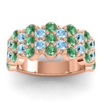 This Aquamarine wedding ring is casted in 18K Rose Gold and set with fine quality Aquamarine and Emerald. All of the gemstones we use are of the top 10% available, those found in fine quality boutiques across the world. This Aquamarine wedding band can also be added to your collection of minimalist Aquamarine rings. This Contemporary Design Is Perfect For Those Who Love Color While Making A Statement. Your Round Colored Stones Sit in A Shared Prong Setting Across Half The Band in Four Honeycomb Style Rows. Free shipping, returns, resizing, and a lifetime warranty ensure you love your purchase.