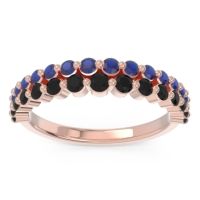 This Black Onyx wedding ring is casted in 14K Rose Gold and set with fine quality Black Onyx and Blue Sapphire. All of the gemstones we use are of the top 10% available, those found in fine quality boutiques across the world. This Black Onyx wedding band can also be added to your collection of minimalist Black Onyx rings. This Band Features Graduated Small Round Brilliants Gems Set in A Half Eternity Ring Around The Shank. Free shipping, returns, resizing, and a lifetime warranty ensure you love your purchase.
