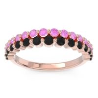 This Black Onyx wedding ring is casted in 14K Rose Gold and set with fine quality Black Onyx and Pink Tourmaline. All of the gemstones we use are of the top 10% available, those found in fine quality boutiques across the world. This Black Onyx wedding band can also be added to your collection of minimalist Black Onyx rings. This Band Features Graduated Small Round Brilliants Gems Set in A Half Eternity Ring Around The Shank. Free shipping, returns, resizing, and a lifetime warranty ensure you love your purchase.