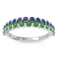 This Emerald wedding ring is casted in Platinum and set with fine quality Emerald and Blue Sapphire. All of the gemstones we use are of the top 10% available, those found in fine quality boutiques across the world. This Emerald wedding band can also be added to your collection of minimalist Emerald rings. This Band Features Graduated Small Round Brilliants Gems Set in A Half Eternity Ring Around The Shank. Free shipping, returns, resizing, and a lifetime warranty ensure you love your purchase.