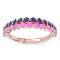 This Pink Tourmaline wedding ring is casted in 14K Rose Gold and set with fine quality Pink Tourmaline and Blue Sapphire. All of the gemstones we use are of the top 10% available, those found in fine quality boutiques across the world. This Pink Tourmaline wedding band can also be added to your collection of minimalist Pink Tourmaline rings. This Band Features Graduated Small Round Brilliants Gems Set in A Half Eternity Ring Around The Shank. Free shipping, returns, resizing, and a lifetime warranty ensure you love your purchase.