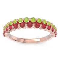 This Ruby wedding ring is casted in 14K Rose Gold and set with fine quality Ruby and Peridot. All of the gemstones we use are of the top 10% available, those found in fine quality boutiques across the world. This Ruby wedding band can also be added to your collection of minimalist Ruby rings. This Band Features Graduated Small Round Brilliants Gems Set in A Half Eternity Ring Around The Shank. Free shipping, returns, resizing, and a lifetime warranty ensure you love your purchase.