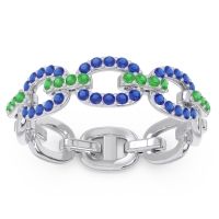 This Emerald and Blue Sapphire ring is the perfect addition to you wardrobe. Not only do we use the top 10% of gemstones available, we also make everything right here in New York City. Our Fashion Rings can be added to your collection of dainty rings, or even to your collection of stacking rings. This Ring Features Round Brilliant Gems Pave Set Half Way Around The Shank in A Chain Link Pattern. Ditch the worry, embrace the shine with free shipping, returns, resizing and a lifetime warranty.