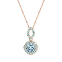 This Aquamarine and Swiss Blue Topaz Necklace is casted in 14K Rose Gold. This Women’s Halo necklace features exceptionally fine gemstones, on par with those found in the world's most exclusive boutiques and among the top 10% available globally. Modern Pendant Featuring A Central, Round Stone Surrounded By A Halo Of Smaller Stones. The Bail Is Also Embellished with Delicate Stone Accents. This necklace comes with a complimentary 18-inch chain. Enjoy the confidence of our 30-day, stress-free return policy—with return shipping fully covered. Each piece is also accompanied by a Lifetime Warranty, ensuring lasting beauty and peace of mind.