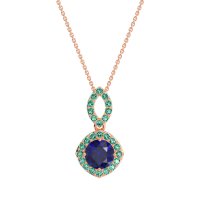 This Blue Sapphire and Emerald Necklace is casted in 14K Rose Gold. This Women’s Halo necklace features exceptionally fine gemstones, on par with those found in the world's most exclusive boutiques and among the top 10% available globally. Modern Pendant Featuring A Central, Round Stone Surrounded By A Halo Of Smaller Stones. The Bail Is Also Embellished with Delicate Stone Accents. This necklace comes with a complimentary 18-inch chain. Enjoy the confidence of our 30-day, stress-free return policy—with return shipping fully covered. Each piece is also accompanied by a Lifetime Warranty, ensuring lasting beauty and peace of mind.