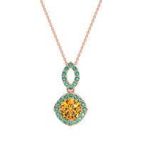 This Citrine and Emerald Necklace is casted in 14K Rose Gold. This Women’s Halo necklace features exceptionally fine gemstones, on par with those found in the world's most exclusive boutiques and among the top 10% available globally. Modern Pendant Featuring A Central, Round Stone Surrounded By A Halo Of Smaller Stones. The Bail Is Also Embellished with Delicate Stone Accents. This necklace comes with a complimentary 18-inch chain. Enjoy the confidence of our 30-day, stress-free return policy—with return shipping fully covered. Each piece is also accompanied by a Lifetime Warranty, ensuring lasting beauty and peace of mind.