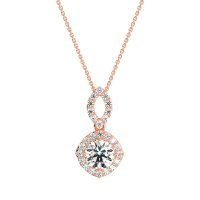 This Lab Diamond Halo Necklace is casted in 18K Rose Gold. We use only exceptionally fine gemstones, truly on par with those found in the world's most exclusive boutiques and representing the top 10% available globally. Modern Pendant Featuring A Central, Round Stone Surrounded By A Halo Of Smaller Stones. The Bail Is Also Embellished with Delicate Stone Accents. You'll get a complimentary 18-inch chain with every necklace. Plus, enjoy a 30-day, hassle-free return policy (we even cover return shipping!) and a Lifetime Warranty for peace of mind.