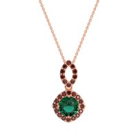 This Lab Emerald and Garnet Necklace is casted in 14K Rose Gold. This Women’s Halo necklace features exceptionally fine gemstones, on par with those found in the world's most exclusive boutiques and among the top 10% available globally. Modern Pendant Featuring A Central, Round Stone Surrounded By A Halo Of Smaller Stones. The Bail Is Also Embellished with Delicate Stone Accents. This necklace comes with a complimentary 18-inch chain. Enjoy the confidence of our 30-day, stress-free return policy—with return shipping fully covered. Each piece is also accompanied by a Lifetime Warranty, ensuring lasting beauty and peace of mind.